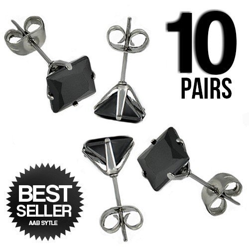 Stunning Stainless Steel Stud Earring With Black Square CZ Stone.