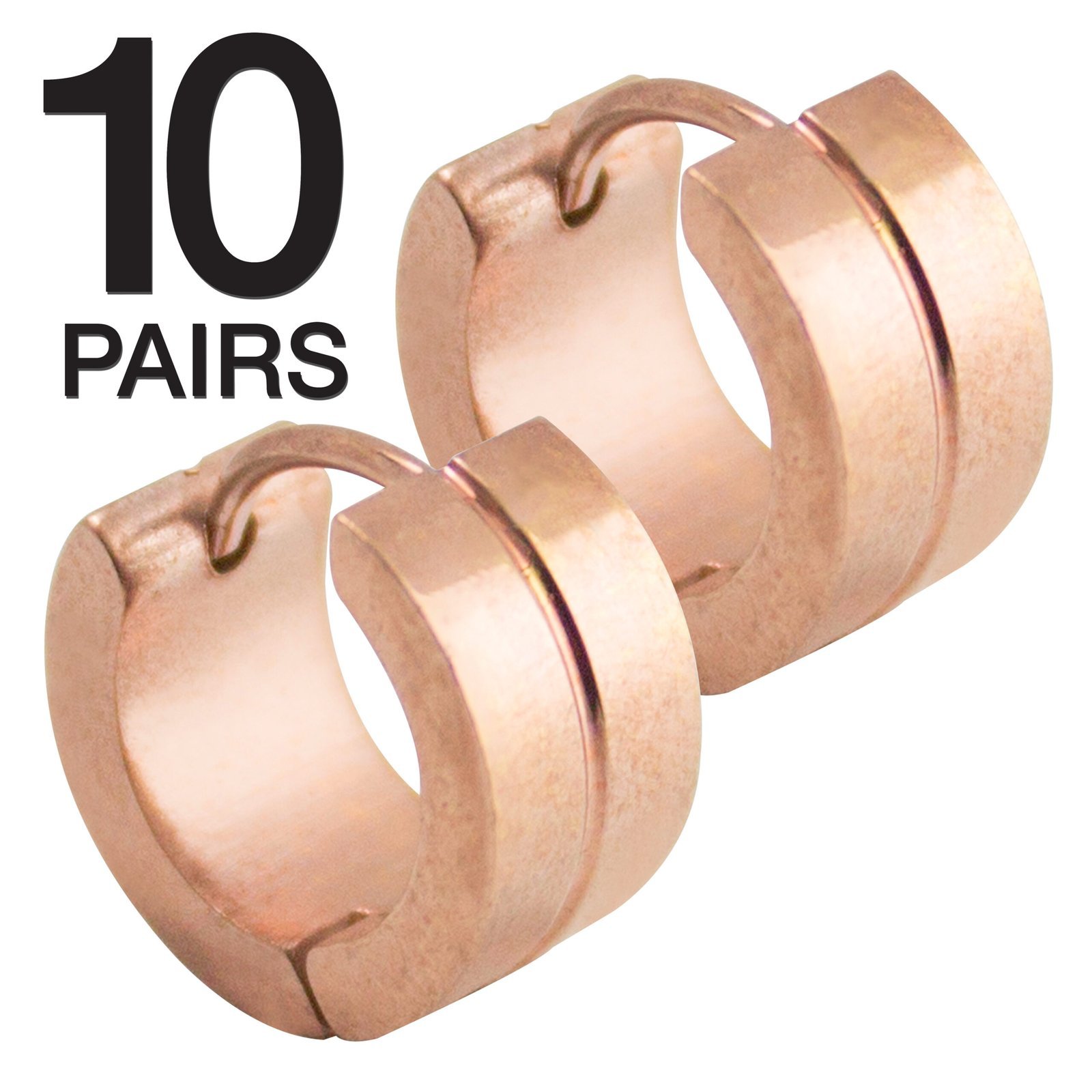 10 Pairs – PCK Stainless Steel Rose Gold Huggie Earrings