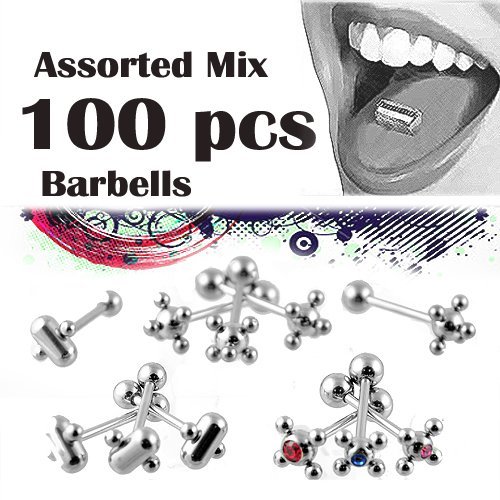14Ga. Surgical Steel Twister Package. This Package Includes An Assortment Of Jeweled, Flower, and Pill Shaped Barbells.