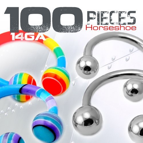 This Package Contains 100 Pieces with Mix Acrylic and Surgical Steel Circular Barbell in Assorted Sizes and Designs.