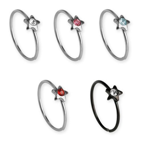 Surgical Steel Circular Nose Ring With Jeweled Star Design. This Item Comes In Five Different Colors!!