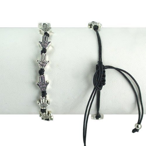 Black String Bracelet with Hamsa Charms 12 Pcs Pack