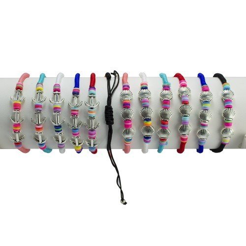 Shell and Anchor Mix Color Adjustable Bracelets 12 Pcs Pack