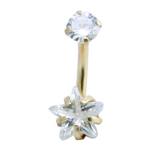 14Ga Surgical Steel Double CZ Star Belly Ring