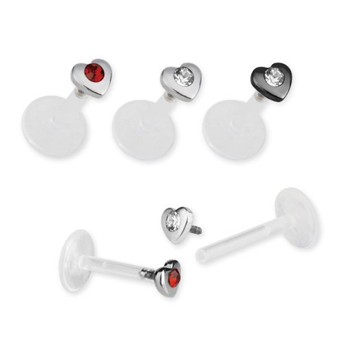 16GA PTFE Internally Threaded Labret With Jeweled Heart Top. This Item Is Available In Two Different Sizes!!
