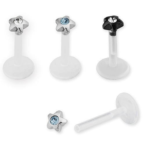 16GA PTFE Internally Threaded Labret With Jeweled Star Top. This Item Is Available In Two Different Sizes!!