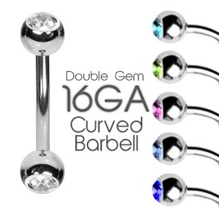 16GA- Double Jeweled Surgical Steel Curved Barbell for Eyebrow Piercings.