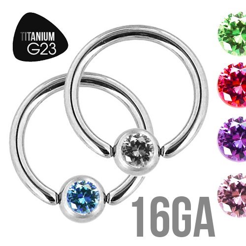 16GA Titanium Grade 23 Jeweled Captive Ring. Available in Assorted Colors & Sizes!!!