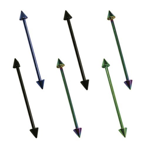 14GA. Anodized Surgical Steel Straight Industrial Barbell w/ Cone