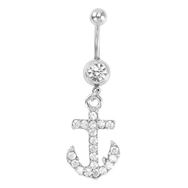 Surgical Steel Navel Ring With Hanging Jeweled Anchor