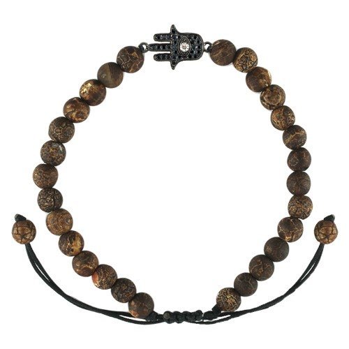 Adjustable Bead Bracelet W/ BLK Hamsa Pave Accent