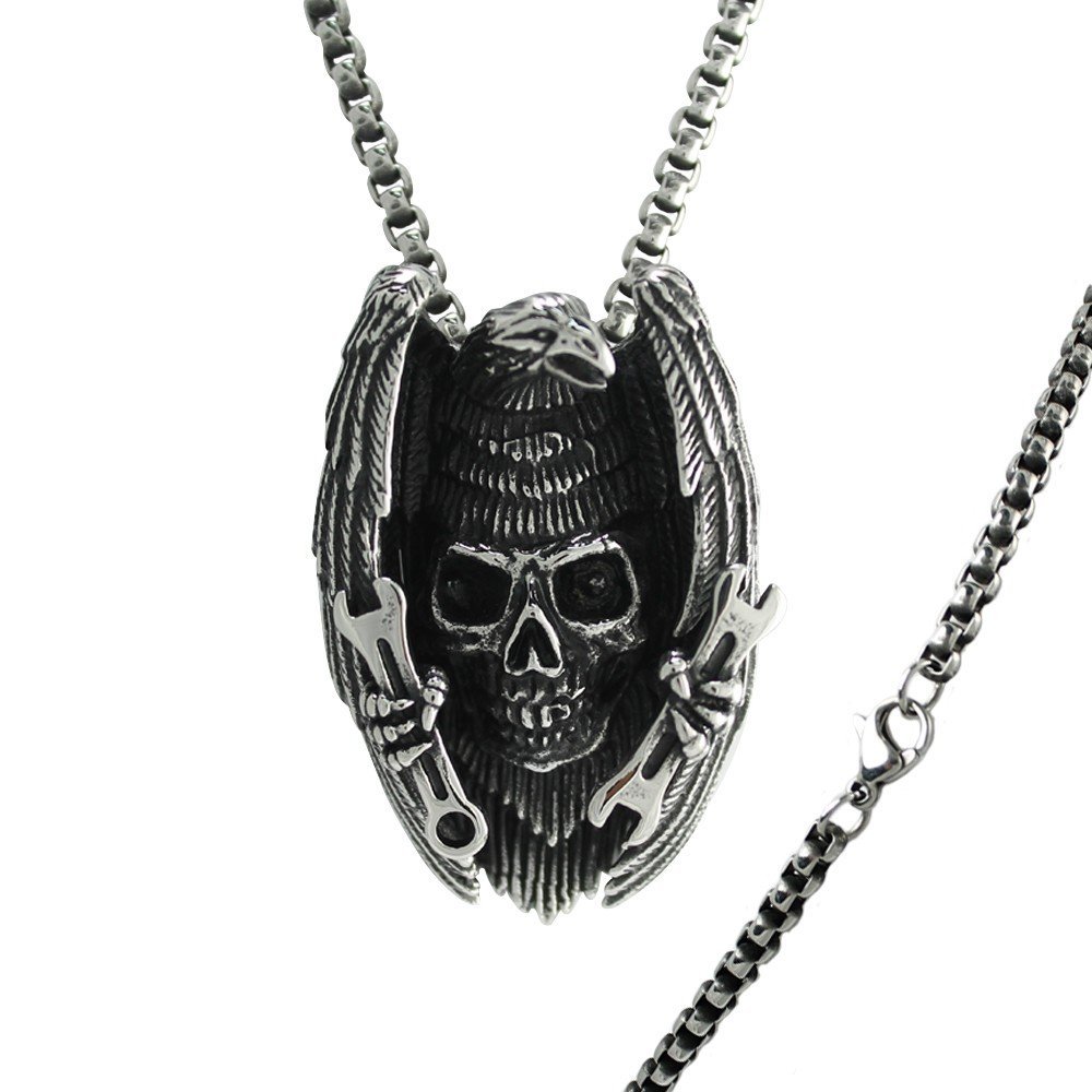 “American Eagle” Skull Ranch Stainless Steel Silver Necklace