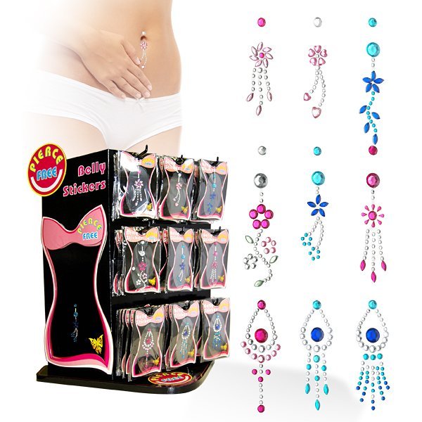 Belly Ring Stickers Display- 45 Piece – No Piercing Required!!