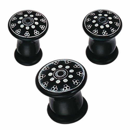 Acrylic Plug with A white Laser Cut Art Design.