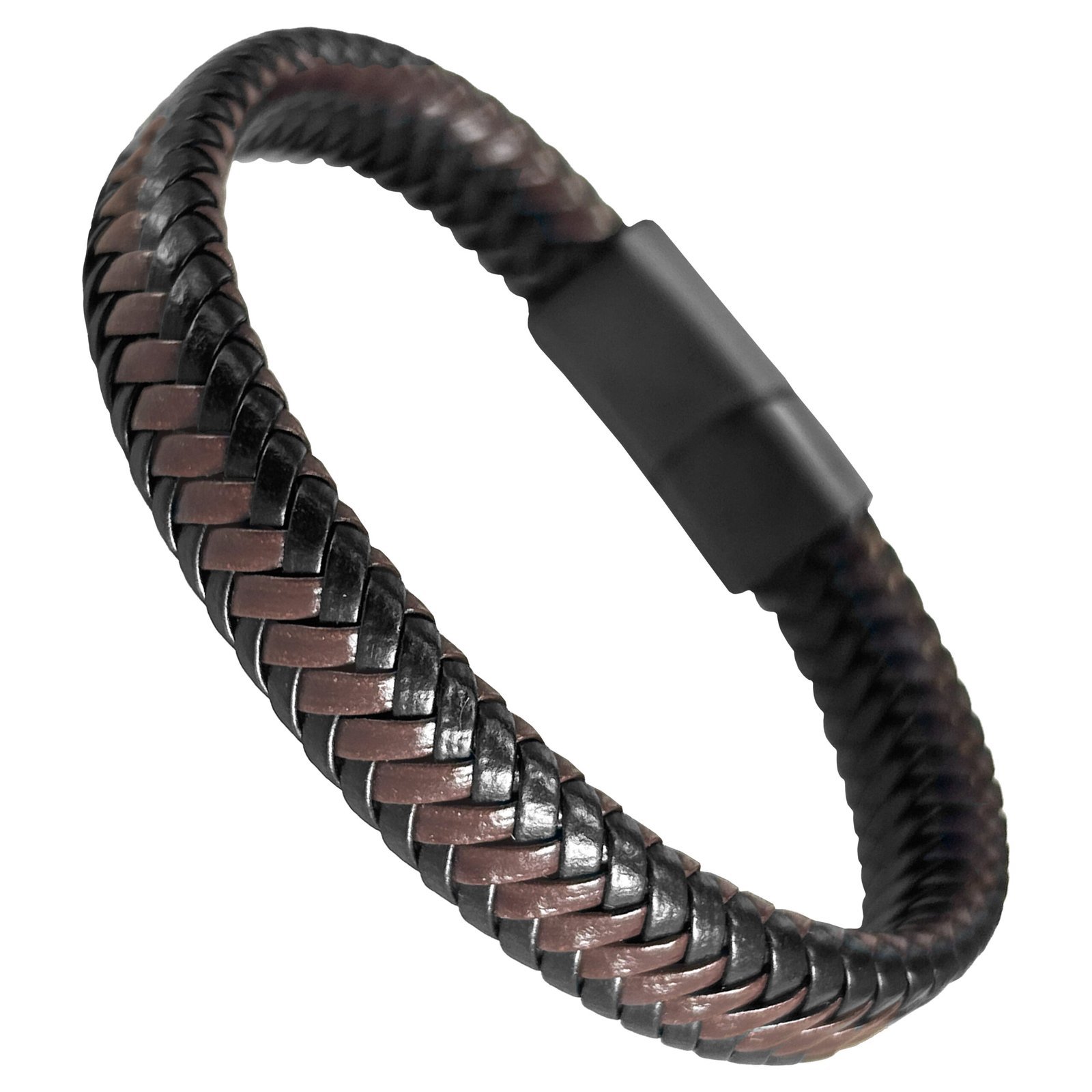 Double-Layered Leather & Stainless Steel w/ Cz Stones Bracelet