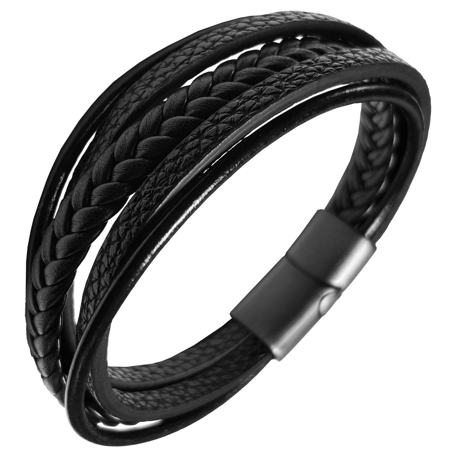 Black Layered Leather Bracelet w/ Braid