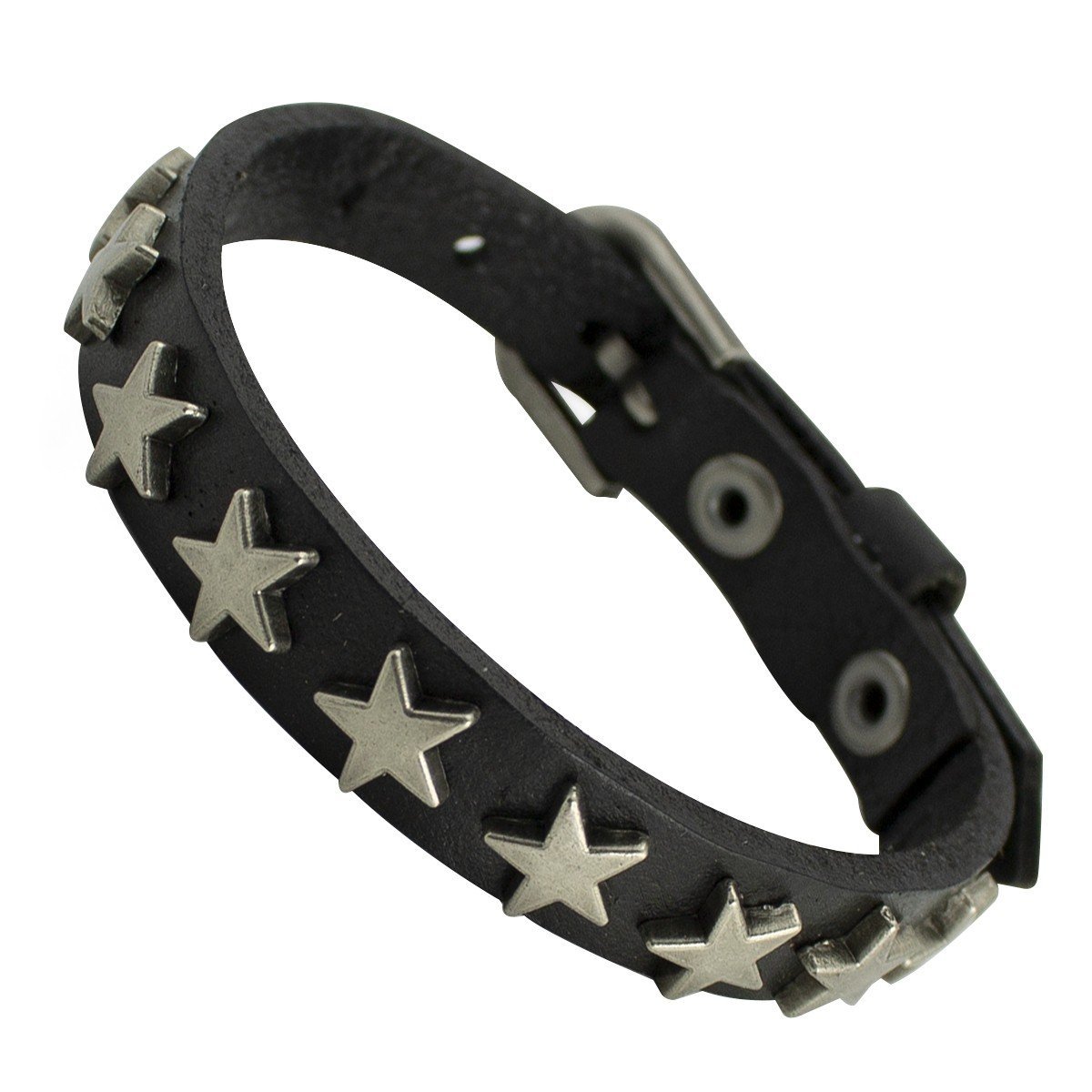 Black Leather Bracelet with Metal Stars