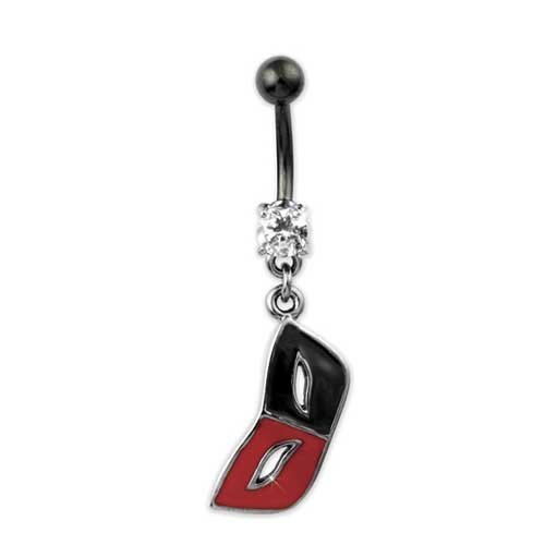 Black PVD Belly Ring With Dangling Mardi Gras Mask