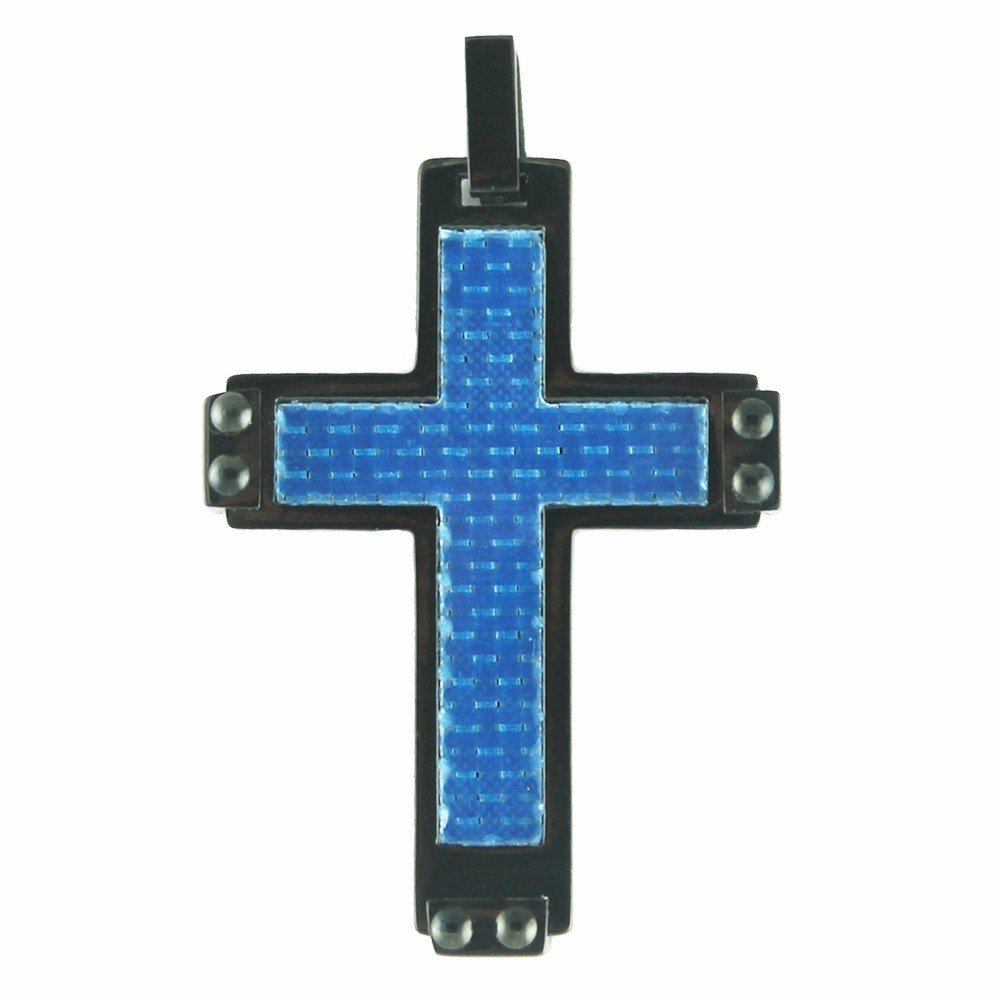 Black PVD Cross Pendant W/ Blue Carbon Fiber