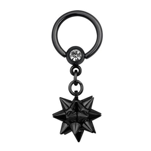 Black PVD Surgical Steel Captive Ring With Jeweled Ball And Dangling Flail