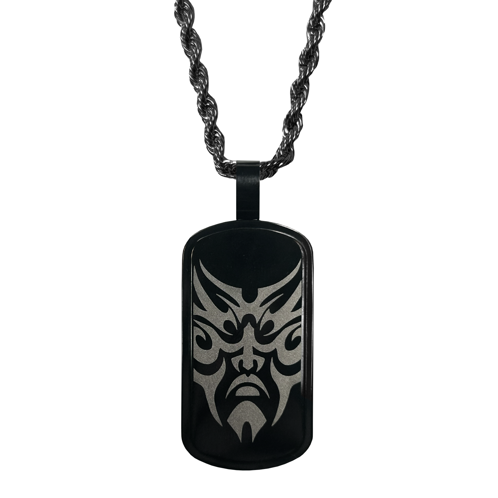 Black Stainless Steel Tribal Face Dog Tag Necklace