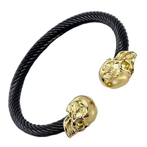 Black w/ Gold Stainless Steel Skull Head Bangle