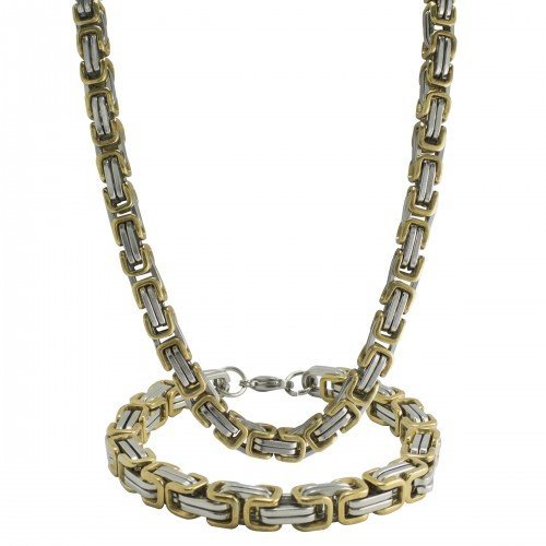 Byzantine Stainless Steel And Gold PVD Necklace Set