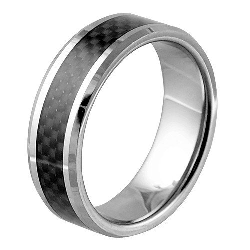 Contemporary Tungsten Ring With 5mm Carbon Fiber Inlay.