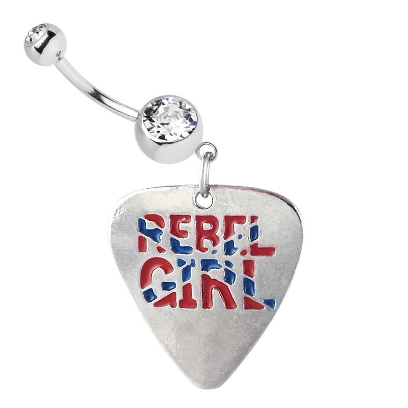 Dangling Stars & Bars Rebel Girl Heart Charm Belly Ring