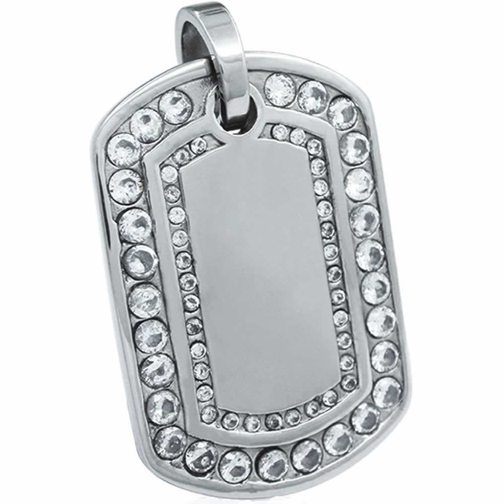HUGE! Almost 3″ With Bale, 1/4″ THICK and Very Heavy, Lush Double Crystal Lined Stainless Steel Dog Tag. From Our Hip Hop Line