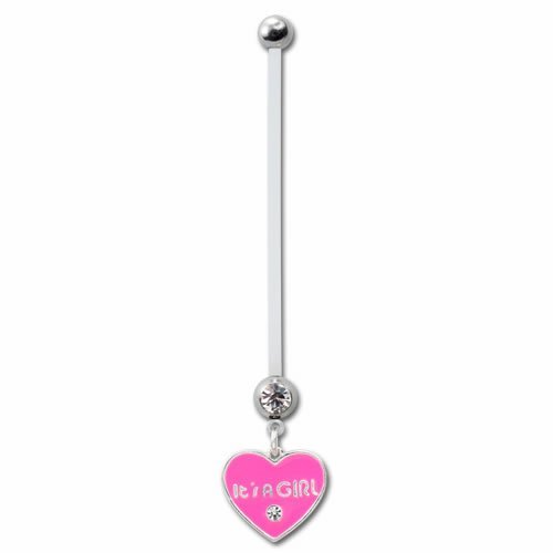 Flexible PTFE “It’s A Girl” Dangling Belly Ring — Pregnancy Piercing Size, 14GA x 45MM x 6&5MM