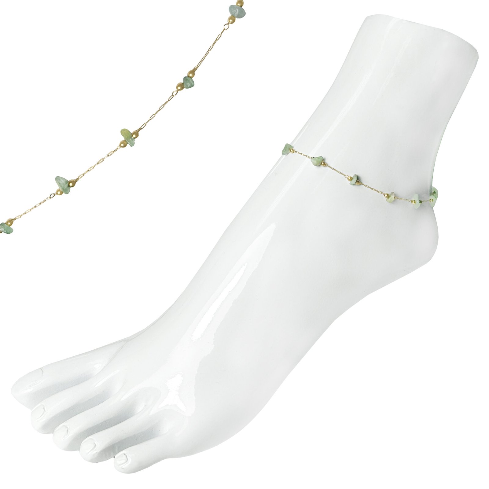 Gold Stainless Steel Light Green Natural Stones Anklet