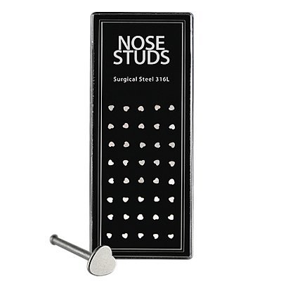 This Case Includes 40 Grade 316L Surgical Steel Heart Shaped Nose Studs.
