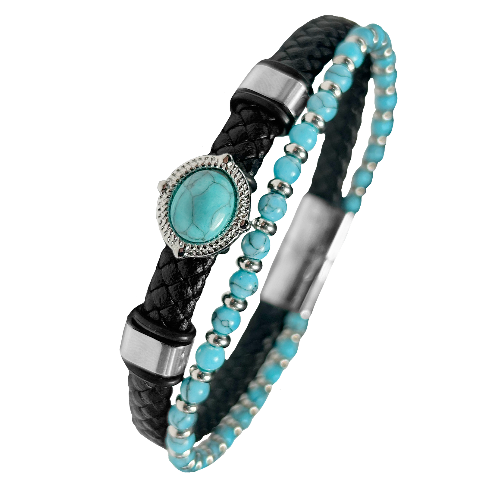 Leather with Stainless Steel and Turquoise Beads Bracelet quantity