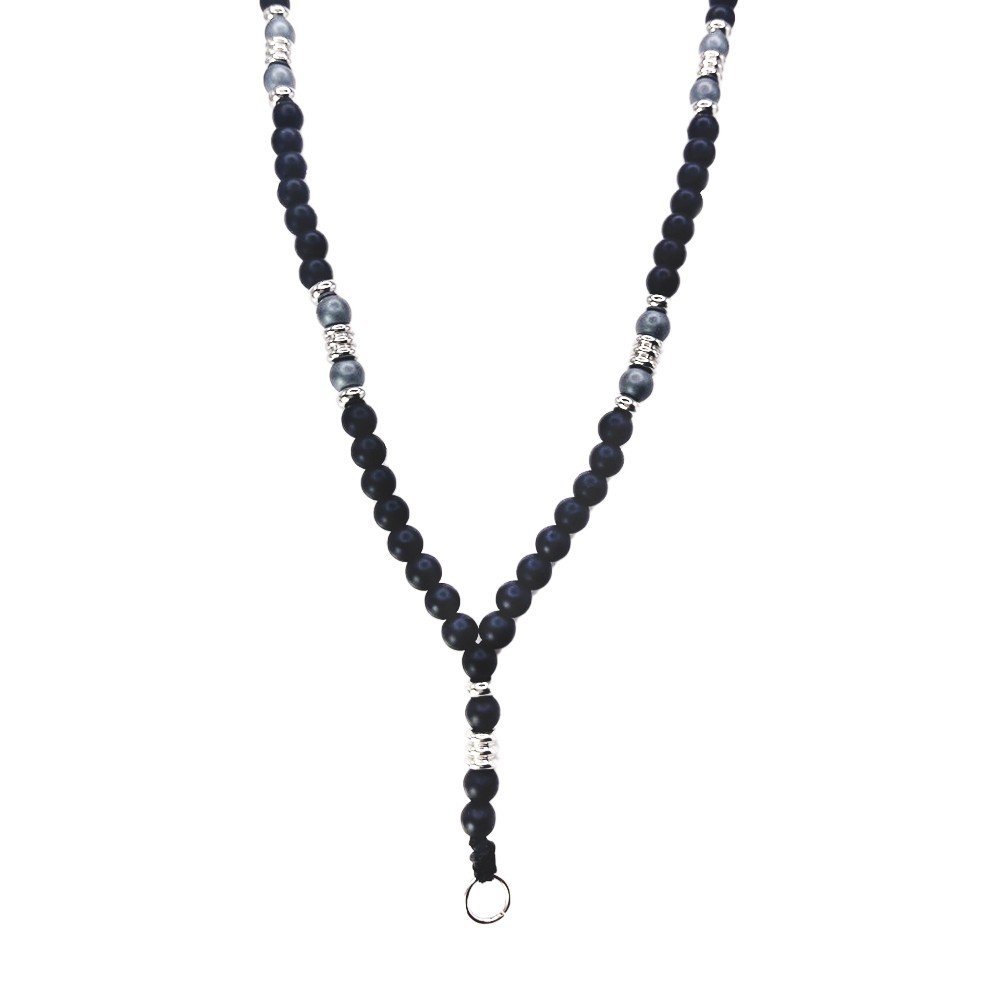 Long Beaded Necklace with Black & Stainless Steel Bead Accents quantity