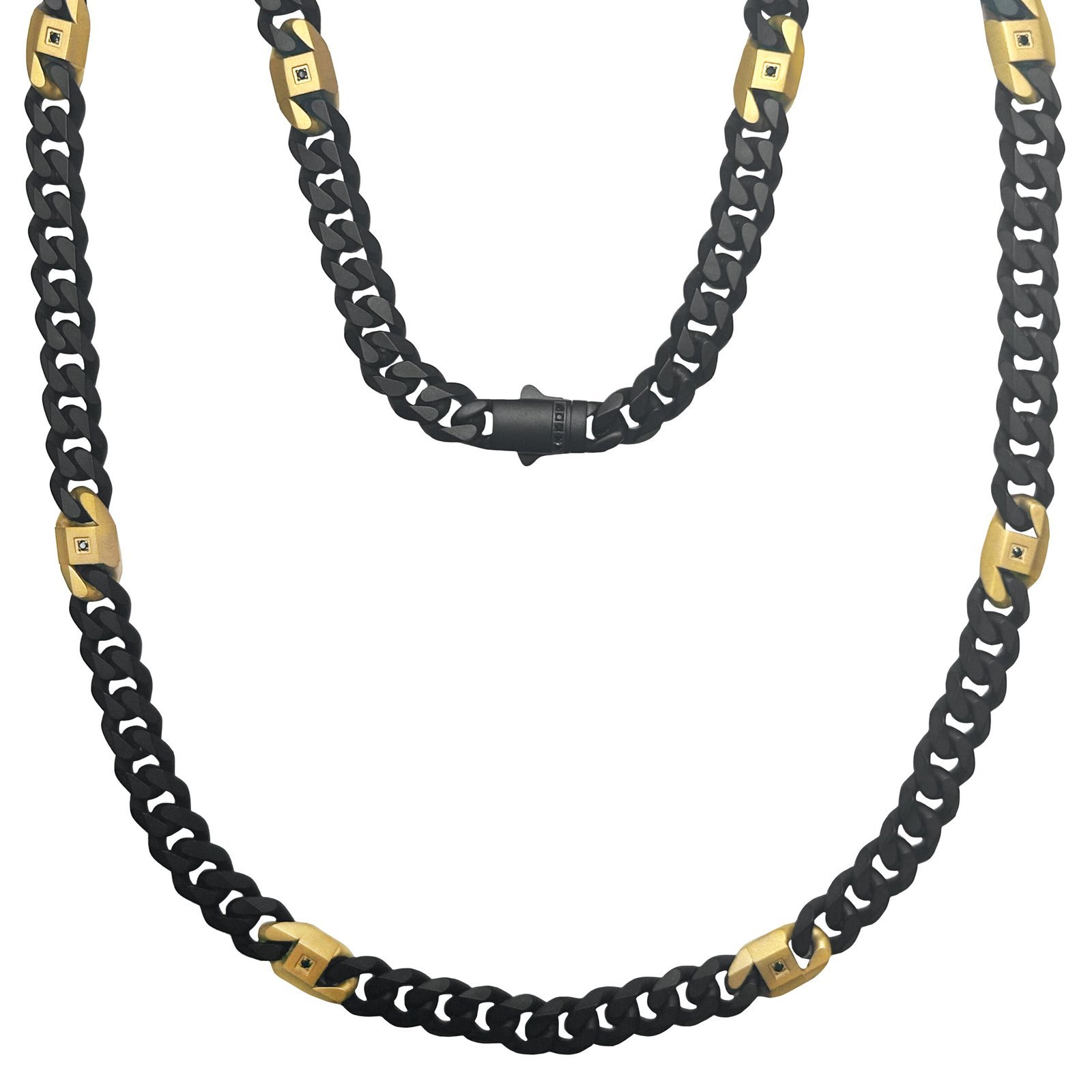 Matte Black & Gold Stainless Steel Chain Necklace w/ Cz Stones