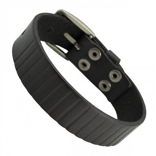 Men’s Black Leather Designer Bracelet with Buckle Clasp