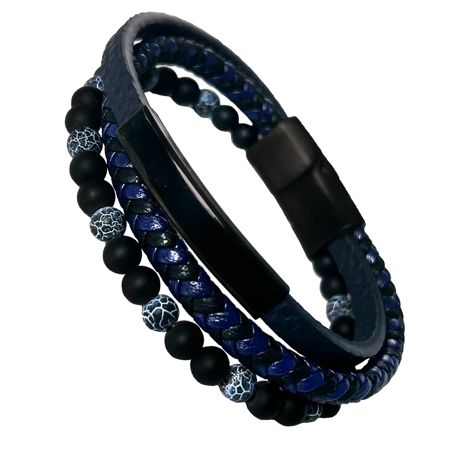 Black & Blue Natural Stone Bead w/ Skulls Bracelet