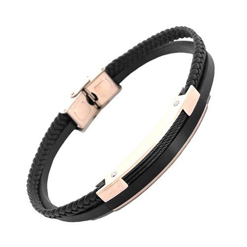 Twisted Stainless Steel Rose Gold & Rope Braided Bracelet