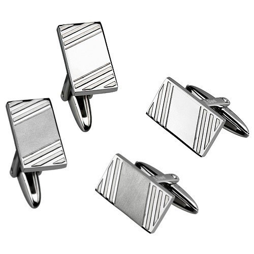 Neo-Classic Stainless Steel Cufflinks with Etched Linear Design.