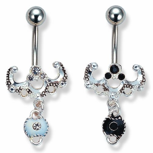Oriental Style Belly Ring with Fancy Dangle Drop