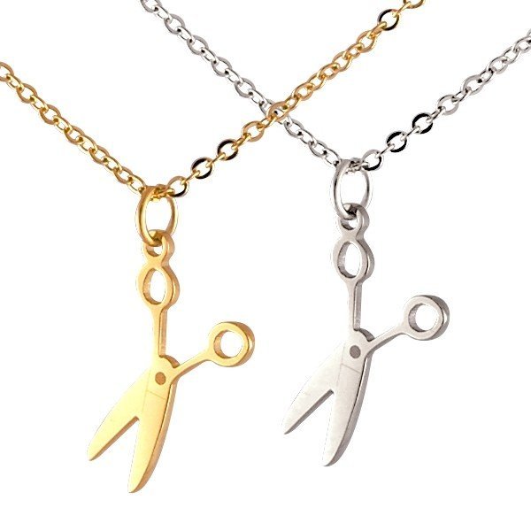 Oval Link Necklace in Gold PVD Coating or Steel with Stylist Shears / Scissor Pendant.