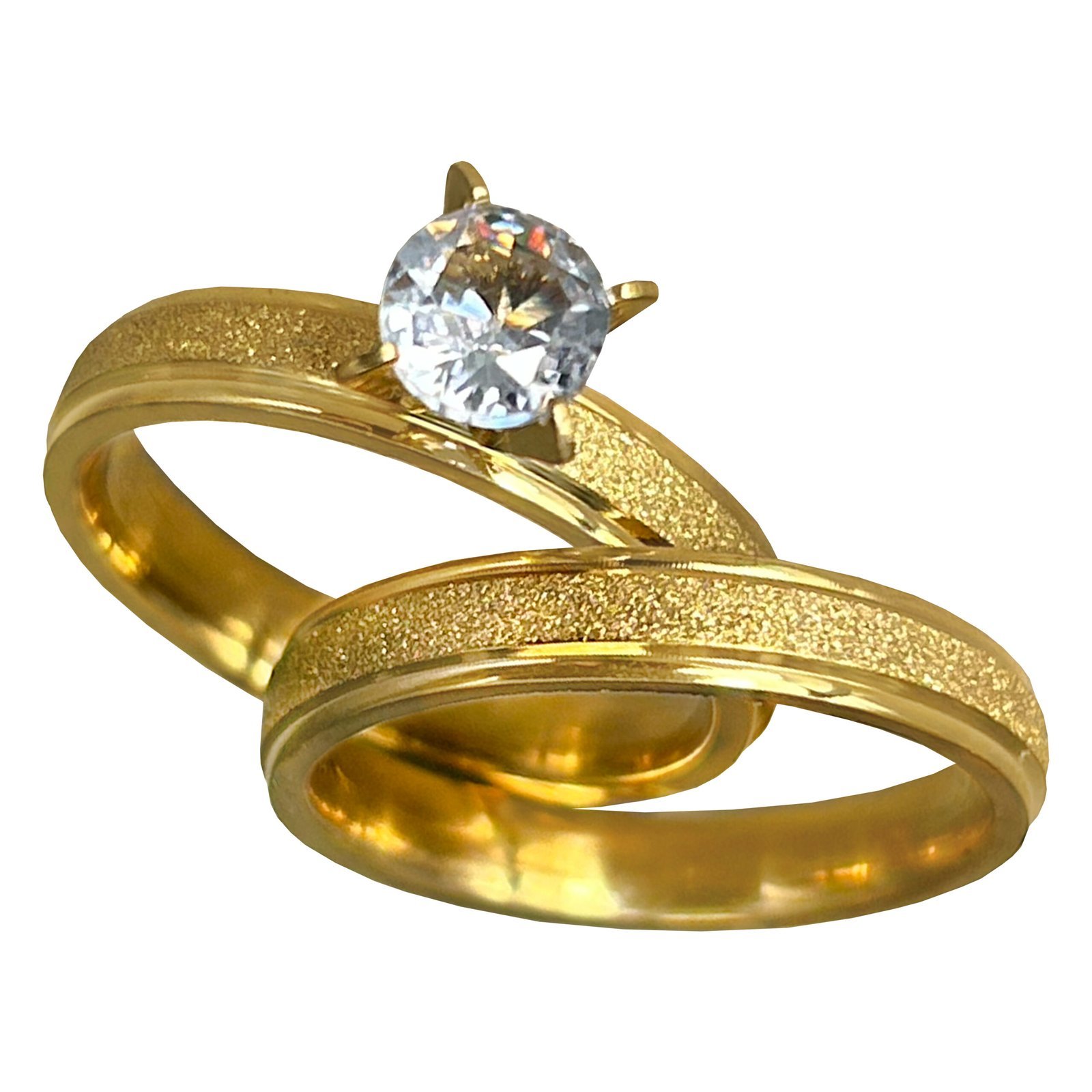 Prong Setting Stainless Steel Gold Engagement Ring Set