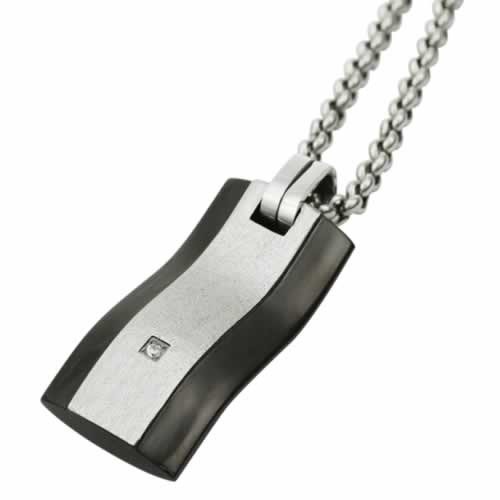 Sand Brushed Stainless Steel Bangle With Black PVD and Small CZ