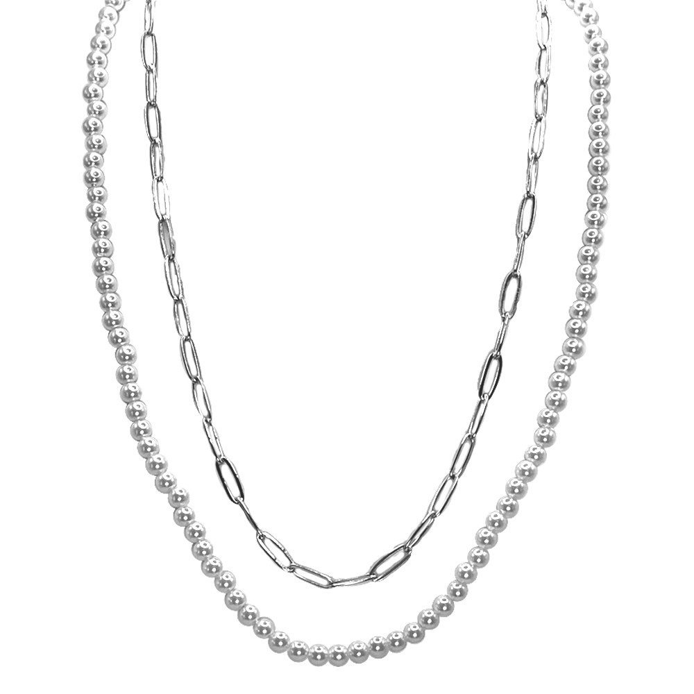 Stainless Steel 2-Layered Necklace With Pearls