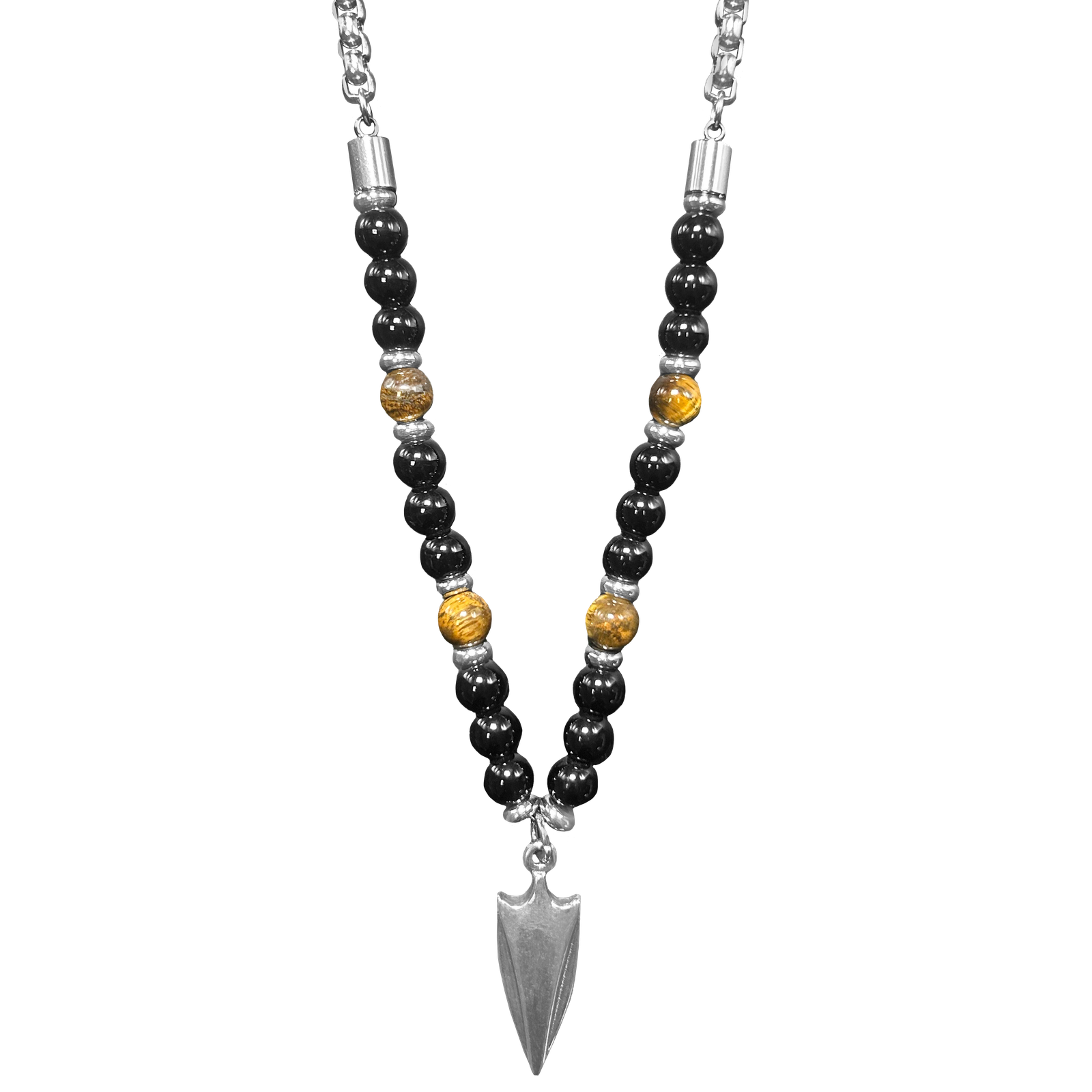 Stainless Steel Arrow & Black and Tiger Eye Beads w/ Chain Necklace