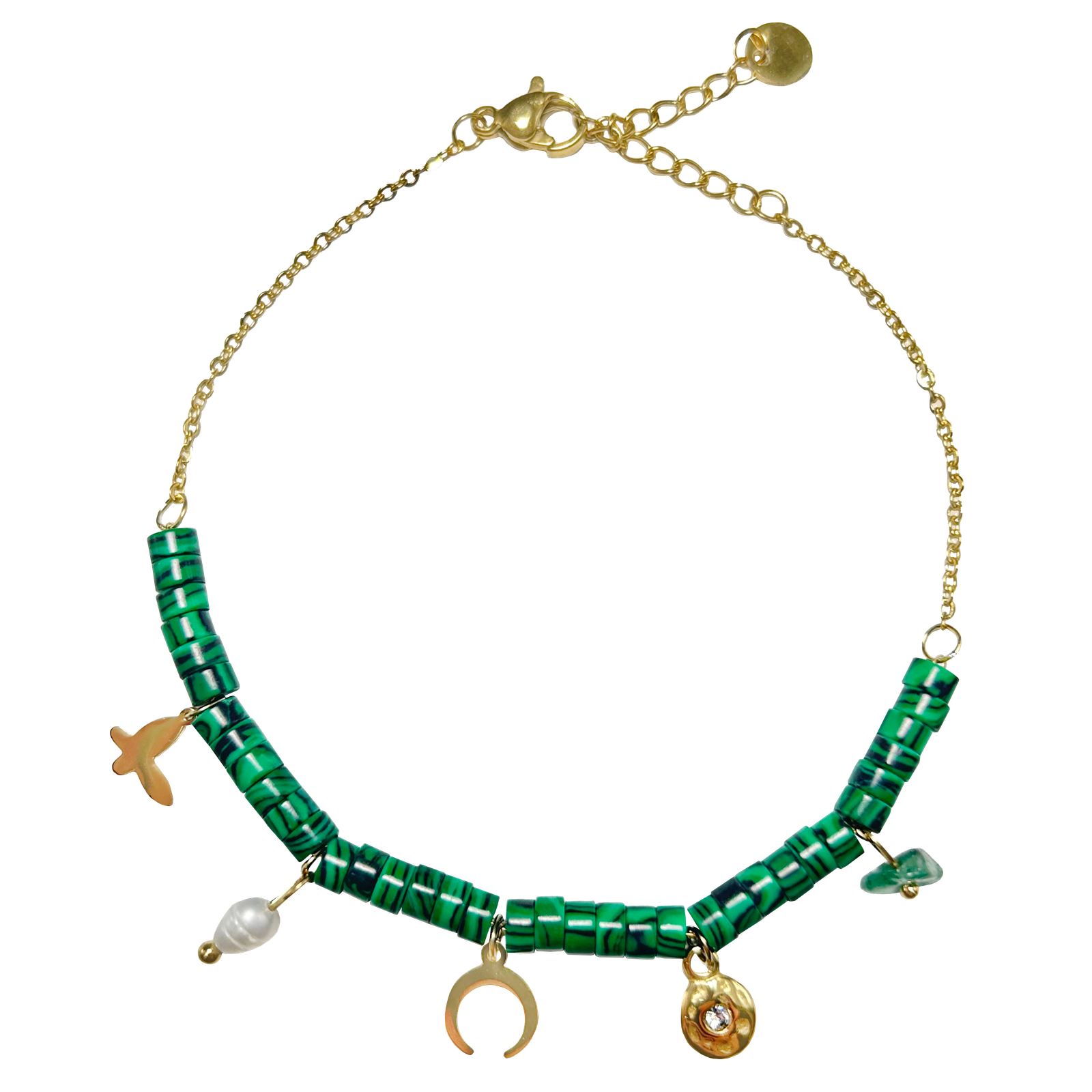 Stainless Steel Rondelle & Natural Stone Bead Bracelet