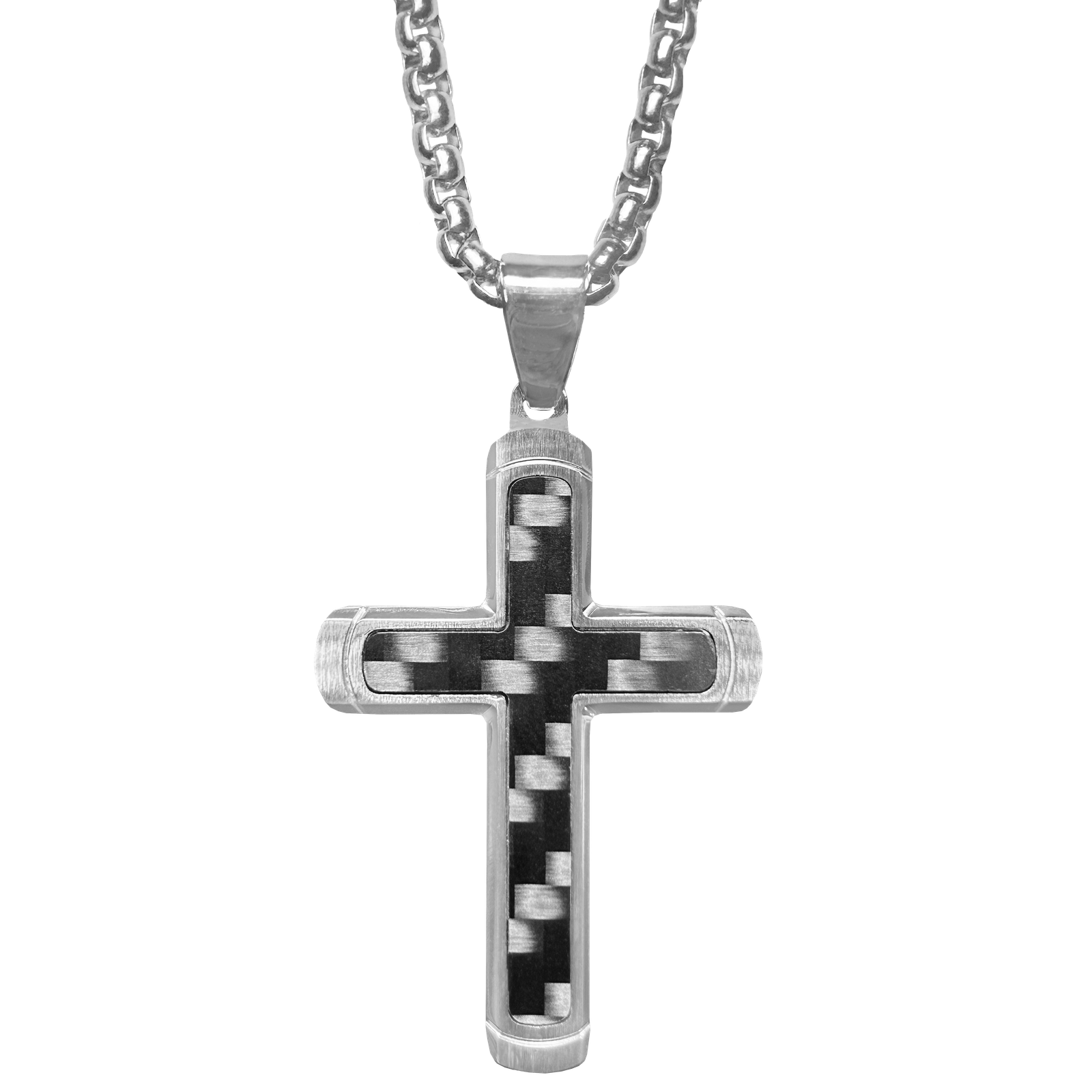 Stainless Steel Black Carbon Fiber Cross Necklace