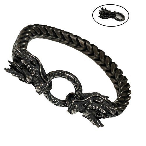 Stainless Steel Blk Franco Link Bracelet with Dragon Head Clasp