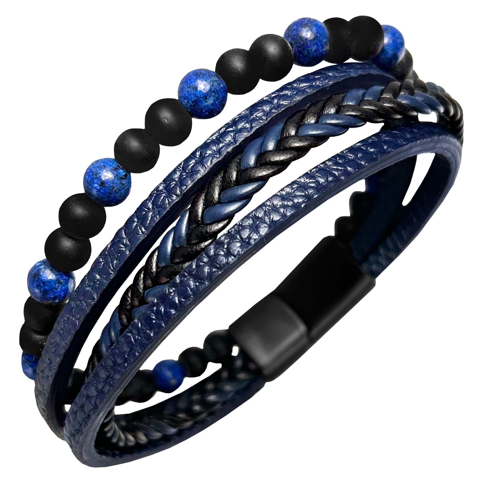 Stainless Steel & Blue Leather Bracelet w/ Beads